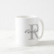 Trendy classic mug featuring a large monogram initial and script name on both sides in grey. Change name & initials using the Template provided. See "About This Product" at side for additional information.