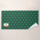 Modern SHAMROCK Bath Towel set, designed with an all-over shamrock pattern against a dark green background. The Irish Flag is set within a circle in the corner of each towel. There is CUSTOMIZABLE curved text at the top and bottom of the circle, plus a MONOGRAM which is also customisable. This text can be replaced with a welcome message and/or personalised with your name, or name of your establishment. Ideal for your guests or patrons on St Patrick's Day. Also available in white.