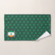 Modern SHAMROCK Bath Towel set, designed with an all-over shamrock pattern against a dark green background. The Irish Flag is set within a circle in the corner of each towel. There is CUSTOMIZABLE curved text at the top and bottom of the circle, plus a MONOGRAM which is also customisable. This text can be replaced with a welcome message and/or personalised with your name, or name of your establishment. Ideal for your guests or patrons on St Patrick's Day. Also available in white.