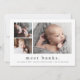 A sweet photo collage birth announcement featuring a simple modern name 3 photos on the front. The back has a large full name header and personal message from the family. Click the edit button to customise this design with your photos and details.
