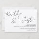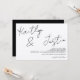 A modern, chic and elegant landscape wedding invitation with custom names with a hand written calligraphy in black and white. All the text, names and background colours are customisable. A simple and minimalist invitation.