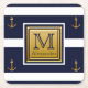 Modern Nautical Anchor Blue White Gold Monogram Square Paper Coaster