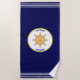 Modern Nautical Golden Ship Wheel on Navy Blue Beach Towel