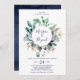 This modern nautical greenery all in one wedding invitation is perfect for a cruise or beach wedding. The botanical design features beautiful green leaves with navy flower and gold starfish accents, giving it a beachy vibe. Include the RSVP info as well if your guest will be replying electronically (optional).