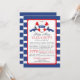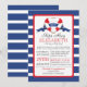 Modern red, white & blue nautical baby shower invitation for a baby boy shower. Our Ships Ahoy contemporary boy baby shower invitation features a red & white stripe heart Buoy with a blue banner with the word boy on it. The background is a bold & bright blue and white horizontal stripe. Flip the invitation over for a matching stripe back. Visit our shop to view this for a girls baby shower and a gender neutral baby shower.