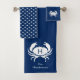 Modern Nautical Navy Blue Crab Monogram Name Bath Towel Set