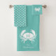 Modern Nautical Seafoam Teal Crab Monogram Name Bath Towel Set