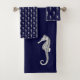 Modern Nautical Seahorse Bathroom Navy Blue Grey Bath Towel Set