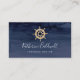 This modern nautical ship helm business card is perfect for a small business owner, consultant, stylist and more! The simple design features a gold boat wheel on a navy blue watercolor background.