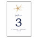 This modern nautical starfish table number is perfect for a cruise or beach wedding. The simple design features gold starfish. The card prints on the front and back (double-sided). Items are printed exactly as they appear on your screen when you add to cart, so personalise and add each table number that you need to your cart individually.