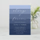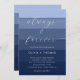 A beach and nautical themed wedding invitation template that features a painted watercolor scene of ocean and sea blue stripes, with a deep water theme. Classy and elegant, simple and modern, it is a lovely choice for a summer destination wedding. The title "always & forever" is in modern calligraphy with simple, elegant flourishes.
