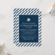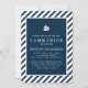 Modern white and blue stripes serves as a backdrop to this card. Customise with an image of your child.