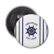 Modern Nautical Wheel And Navy Blue Striped Custom Bottle Opener