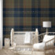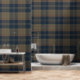 Modern Navy and Tan Japandi Plaid Wallpaper