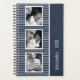 Start the new year in the best way with this cute and modern 3 photo planner. Navy blue and white stripes background. Customise it with 3 of your favourite photos and your name. It is an excellent Christmas, birthday or new year gift idea for your mother, father, grandparents or friends; for school or your office. If you need help, please let us know and we will gladly help you.
