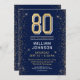 Modern Navy Blue 80th Birthday Surprise Party Invitation