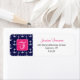 Modern stylish design featuring a dark blue and white pattern personalise it with your name and monogram on a square girly pink frame.