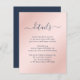 Provide your guests with important details with this elegant modern navy blue and blush wedding enclosure card featuring a modern script font. Matching items available.