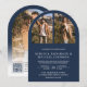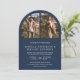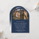 Modern Navy Blue Arch Photo QR Code Wedding Invitation