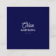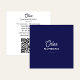 This navy blue business card features elegant white script and a QR code for easy digital access. A sleek, professional design with space for all your details.