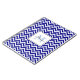 Personalised spiral notebook features navy blue chevron pattern with custom name in black handwriting font and monogram in sky blue shade in white square frame.