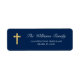 Invite guests, friends, and family to your son's 1st Communion or send a thank you card for coming to a Holy Communion Reception with these Modern Navy Blue Gold Cross First Holy Communion Return Address Labels. This design features a beautiful, simple golden cross against a classic dark navy blue background. Personalise with your name and return address for an easy and convenient sendout of 1st Communion invitations or First Communion Thank You Cards.