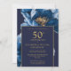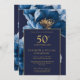 Modern Navy Blue Floral Elegant 50th Anniversary Invitation