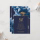 Modern Navy Blue Floral Elegant Birthday Invitation