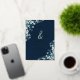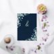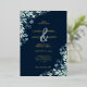 Modern wedding invitation. Featuring flourishes of rustic foliage and tiny blue flowers on an Navy blue background. Easy to customise with your unique information.