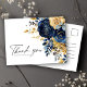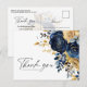 This dazzling Modern Navy Blue Gold Floral Wedding Postcard features delicate floral watercolor flowers in mesmerising shades of timeless navy blue and luxurious gold, creating a captivating and whimsical addition for any wedding stationery. The intricate bohemian blooms and botanical elements lend a touch of rustic yet regal charm to your thank you notes, making them truly unique. Celebrate love in a modern yet trendy and stylish manner with this chic postcard, perfect for couples seeking a contemporary twist on tradition. Whether your wedding is indoors or outdoors, this one-of-a-kind postcard sets the tone for a celebration that seamlessly blends sophistication with natural beauty. It complements any wedding theme, including boho wedding, summer wedding, fall wedding, navy blue wedding, winter wedding, spring wedding, and more. Use the design tool to customise the text size, colours, font styles, and placement to your liking.