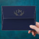 Modern Navy Blue Gold Leaf Wedding Monogram Envelope