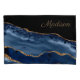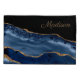 Elegant, stylish, and trendy navy blue and glittery gold marble pillowcase personalised with your name in an elegant script font.