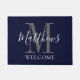 Modern Navy Blue Grey Monogram Newlyweds Wedding Doormat
