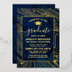 Modern Navy Blue Marble Graduation Party Gold Foil Invitation.