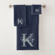 Modern Navy Blue Monogram Script Bath Towel Set