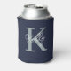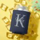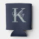 Modern Navy Blue Monogram Script Can Cooler