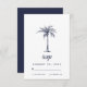 Modern Navy Blue Palm Tree Tropical Beach Wedding RSVP Card