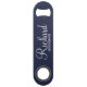 featuring personalised groomsman's name in white modern script font style with title and wedding date in modern sans serif font style on navy blue background.