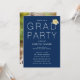 This modern graduation party invitation features simple, contemporary lettering for a clean and minimalist look. The phrase "Grad Party" is written in modern typography, and a gold graduation cap sits on the "D" in "Grad". Personalise the template on the front with your party details, then add a full photo of the graduate to the back of the invite.