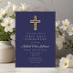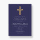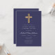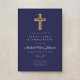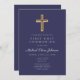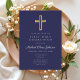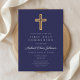 Modern Navy Blue Religious Boy First Communion Invitation.
