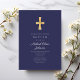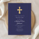 Modern Navy Blue Religious Cross Boy Baptism Invitation