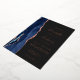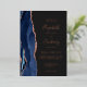 The left-hand edge of this elegant modern wedding invitation features a navy blue watercolor agate border trimmed with faux rose gold glitter. The customisable text combines handwriting, copperplate and italic fonts in real rose gold foil on an off-black background. The reverse side features a matching navy blue and rose gold agate design.