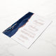 The left-hand edge of this elegant modern wedding invitation features a navy blue watercolor agate border trimmed with faux rose gold glitter. The customisable text combines handwriting, copperplate and italic fonts in real rose gold foil on a white background. The reverse side features a matching navy blue and rose gold agate design.