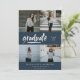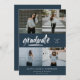 Modern navy blue script 4 photo stylish graduation announcement and party invitation