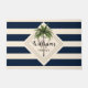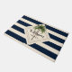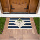 Style out your front door or patio entrance with this Modern Navy Blue Script Tropical Palm Monogram Doormat. It is an elegant design with dark blue and white striped background and a palm tree on the centre. Family monogram initial is in light grey and name is in black calligraphy script lettering. Click personalise template option and follow the prompts.