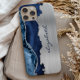 This trendy design features a navy blue watercolor agate design trimmed with silver faux glitter, on a silver faux brushed metal foil background. Personalise it with your name or monogram in navy blue handwriting-style script.