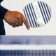 Modern Navy Blue Striped Custom Name Ping Pong Paddle