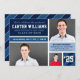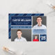 Modern style graduation announcement card and party invitations feature a collage of three (3) photos of the graduate in a modern colour block collage with stripes design. Navy blue, sapphire, powder blue, cloud blue, and white colours.