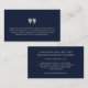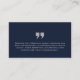 Craft a memorable impression with this dual-sided business card, combining professional contact details and a client testimonial. The front features a glowing endorsement against a sleek navy backdrop, highlighting your personalised service and expertise. On the flip side, your contact information shines in golden classic typography on navy, ensuring clients have the details they need to reach out. Ideal for estate planners, attorneys, advisors, consultants, and any business professional seeking sophisticated business cards for expanding your professional network.