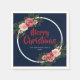 Modern Navy Blue Watercolor Flowers Christmas Napkin